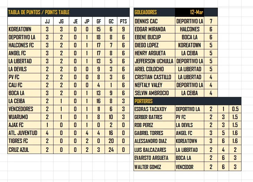 TABLAS / STANDINGS